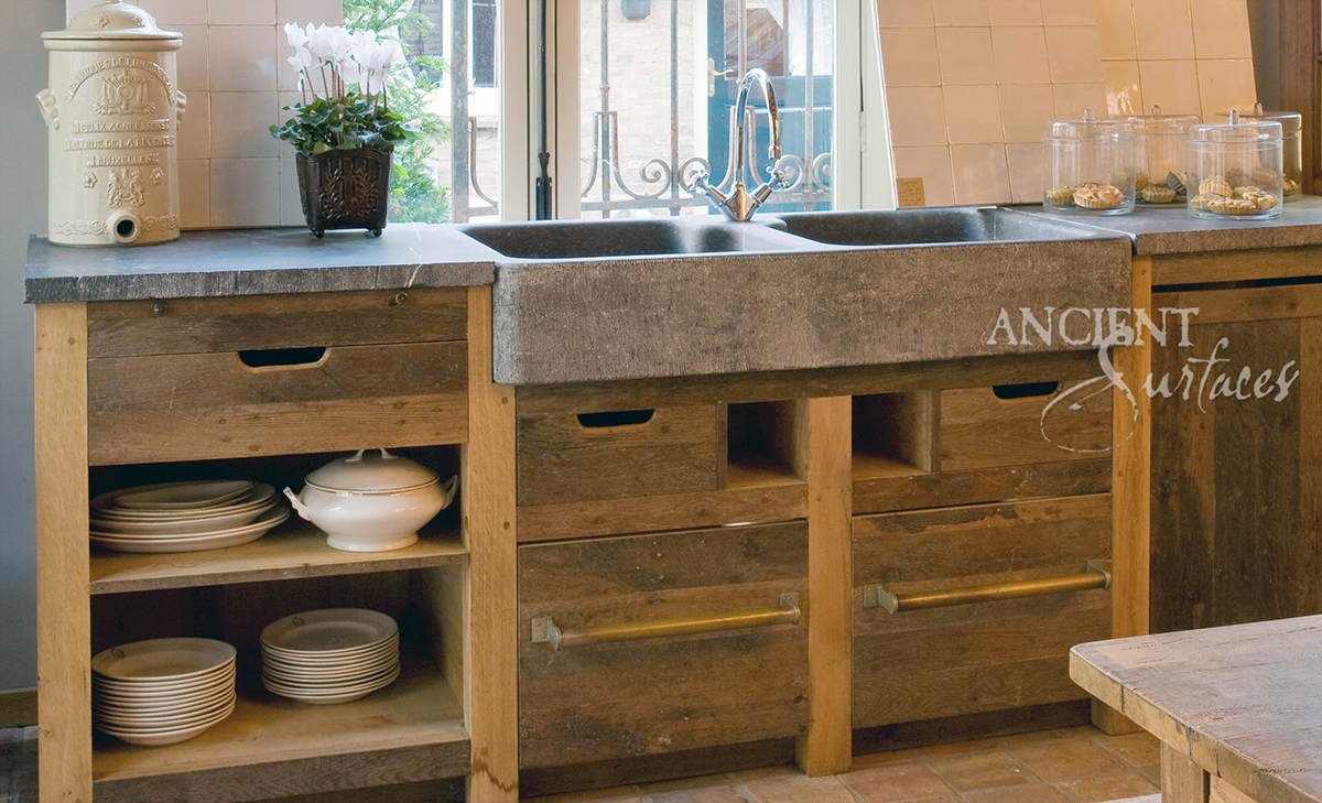 Jet Black Basalt and antique Oolitic limestone sinks are the two kitchen sink types that are design statement in and by themselves and are commonly associated with custom, hard to get, kitchen appliances such as Molteni, La Cournue and La Cranche kitchen oven ranges.