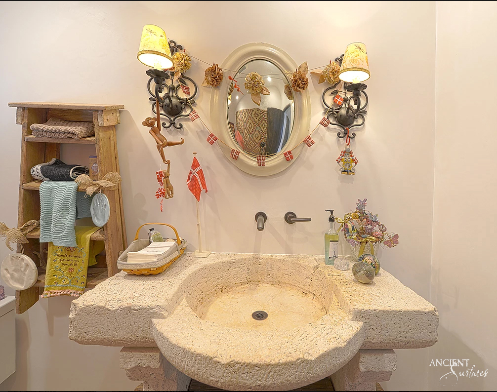 In the heart of a quaint European village, nestled between cobblestone streets and ivy-covered walls, lies a centuries-old home. As you step inside, your eyes are drawn to a stunning centerpiece: an antique limestone sink, its surface worn smooth by the touch of countless hands and the passage of time. This isn’t just any sink; it’s a piece of history, a testament to the artistry and craftsmanship of bygone eras. This is the magic that Ancient Surfaces brings to your bathroom.