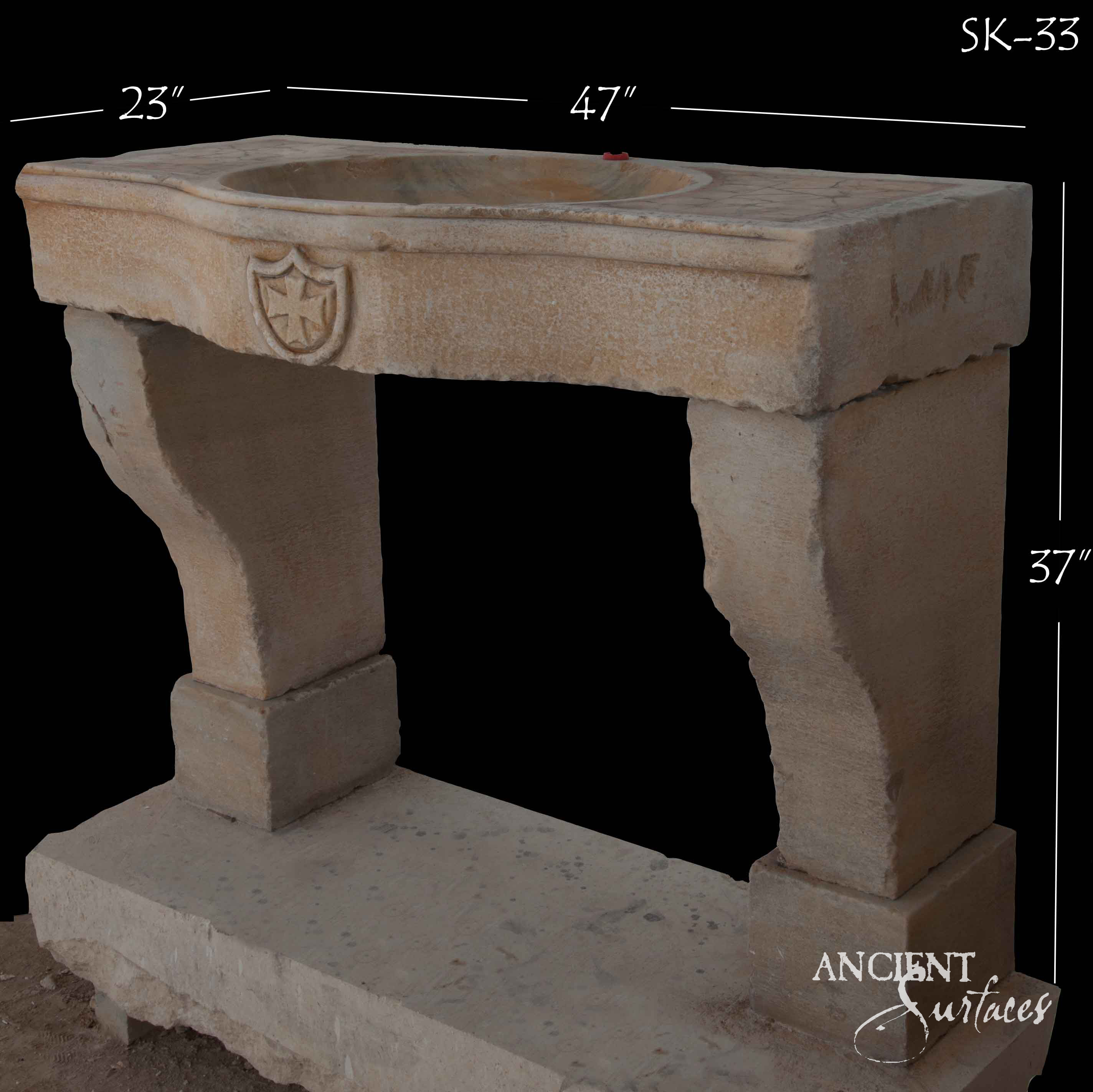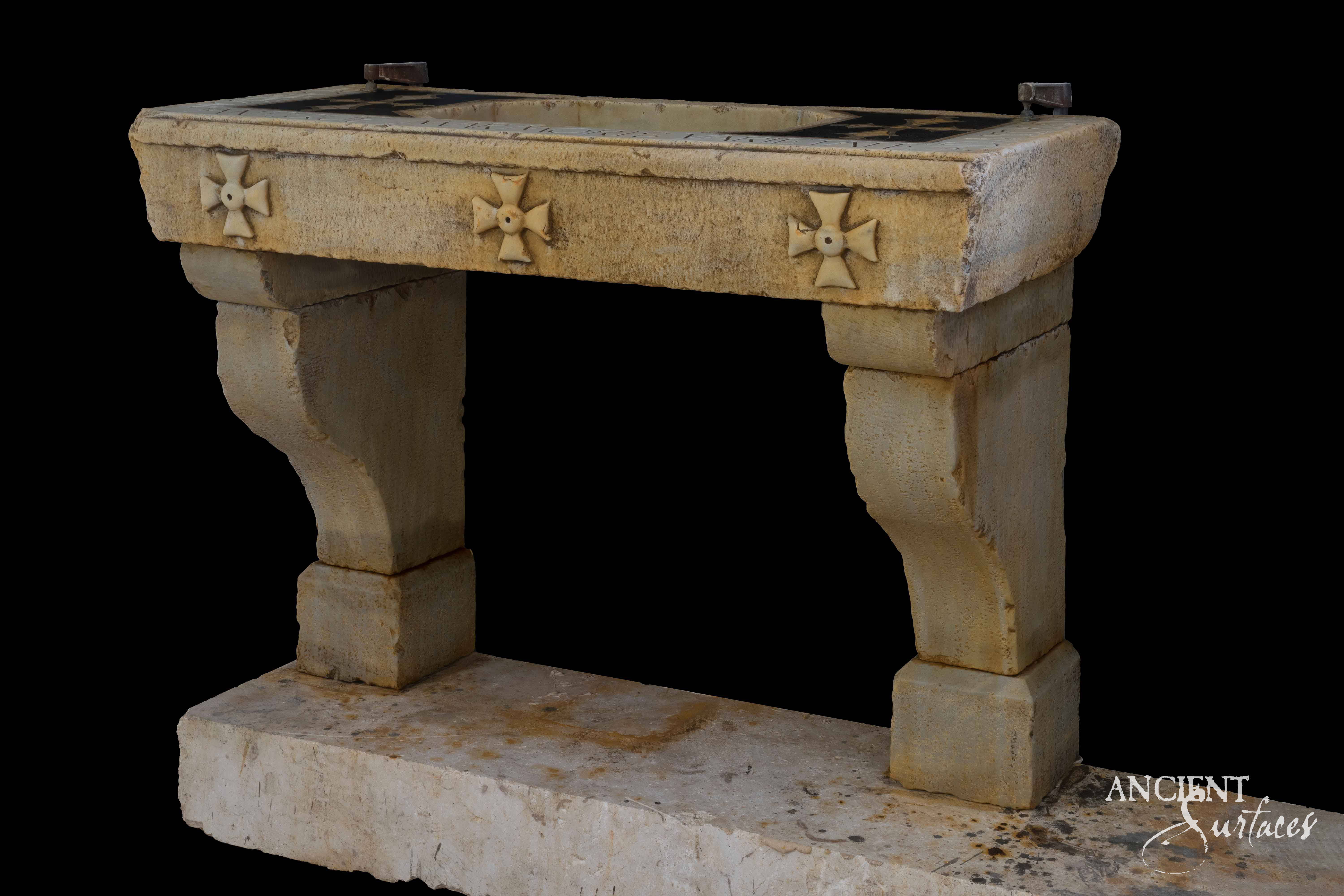 Picture a serene monastery nestled in the hills, where monks sought solace and enlightenment. The limestone sink, adorned with intricately carved crosses, might have been a silent witness to their daily rituals. These crosses, etched with care, symbolize unwavering faith and the tranquility of monastic life. As you incorporate this sink into your home, you bring with it the serene reverence and spiritual devotion that has touched its stone surface over centuries.