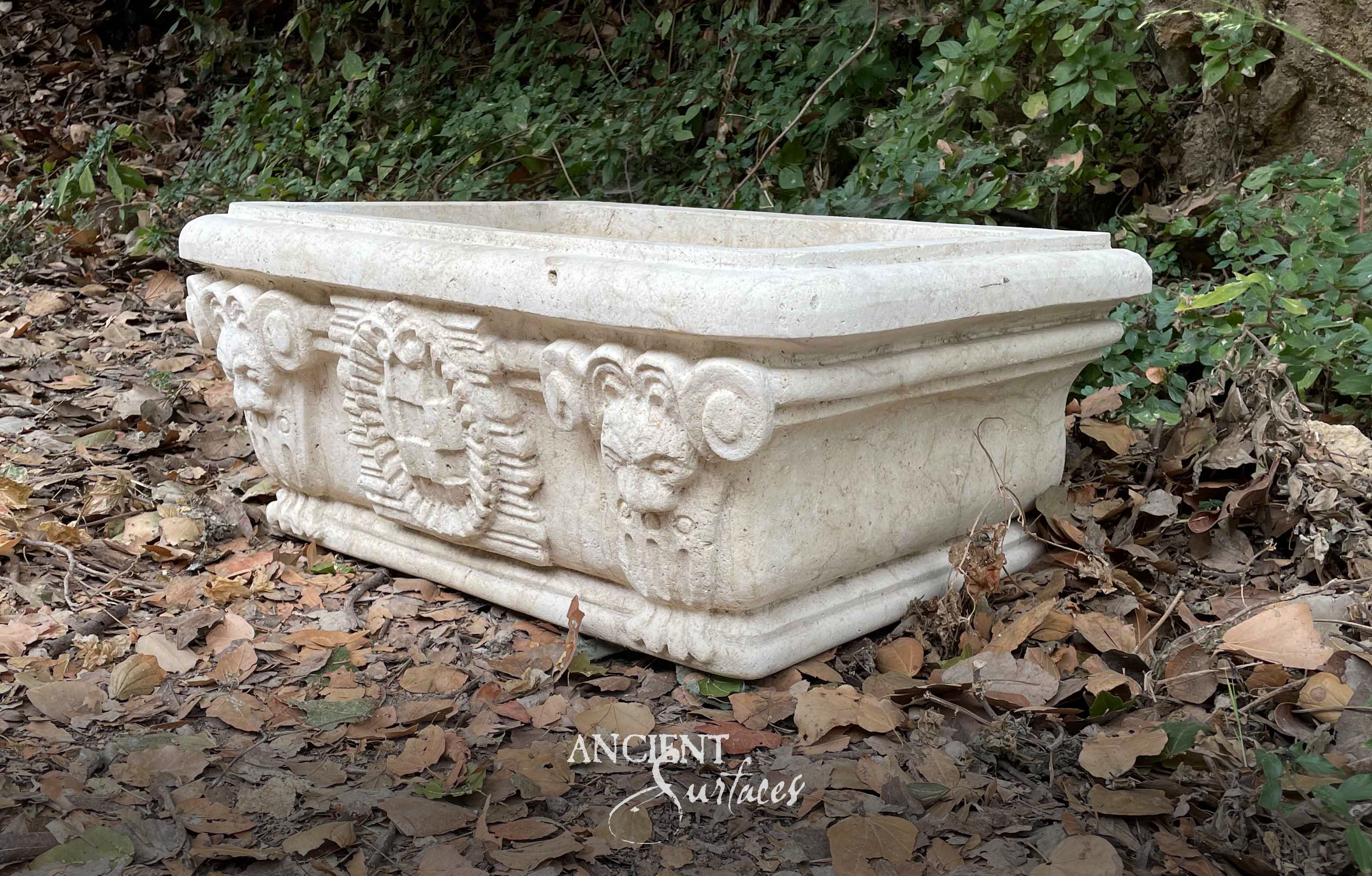 There’s nothing quite like this one. A hand-carved planter-sink hybrid, complete with baroque scrolls, ram heads, and heraldic emblems this is pure theatrical elegance carved in stone. Whether repurposed as a garden feature, a courtyard wash basin, or a one-of-a-kind console sink, this piece speaks of European nobility and artisan excellence.