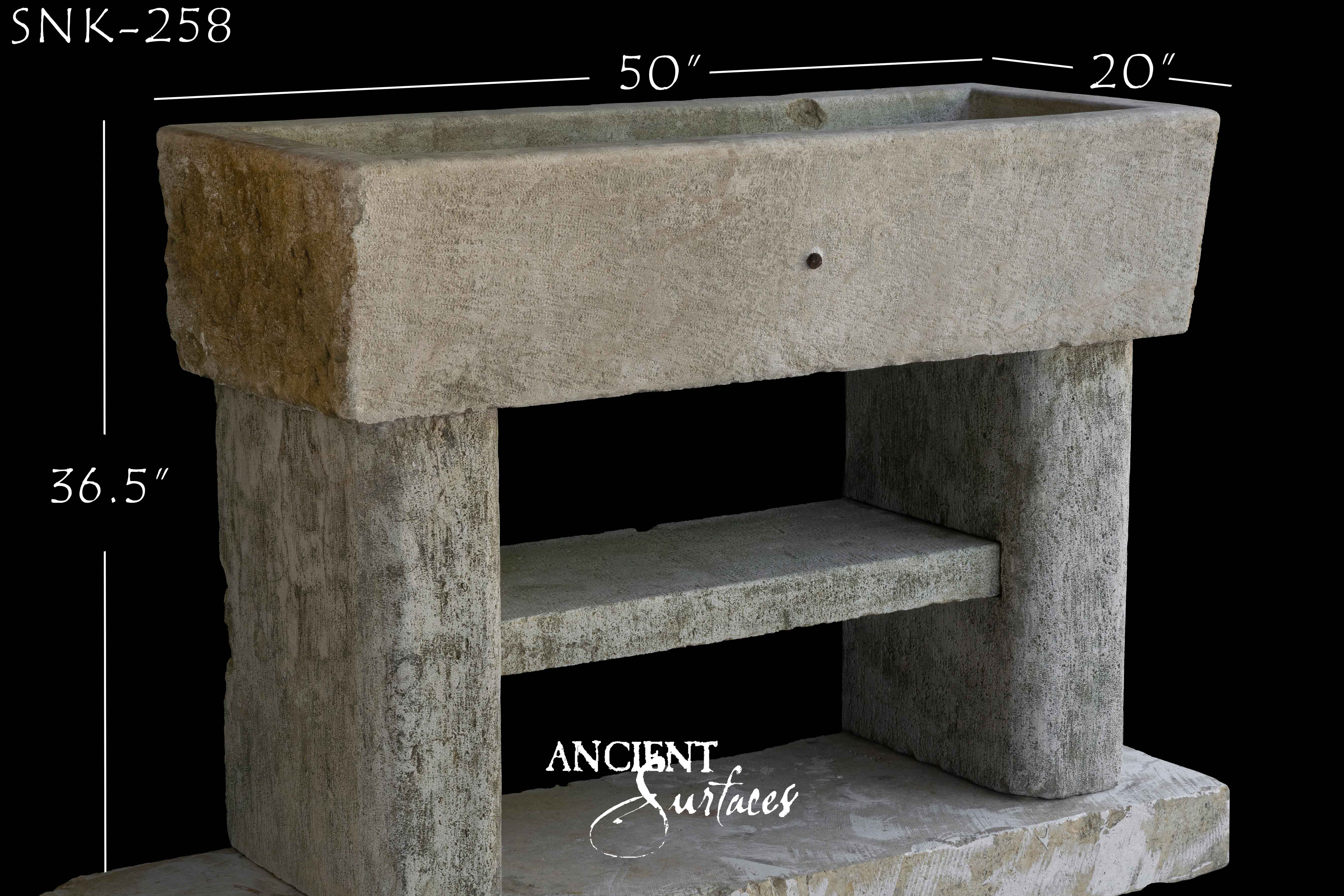 With softly weathered edges and graceful curves etched into its limestone structure, SNK-191 carries the weight of centuries in its design. The natural patina on its surface speaks of history and authenticity, making it an ideal choice for homes that celebrate vintage charm. Whether incorporated into a traditional European-style bathroom or an outdoor patio wash station, this sink reflects the hallmark quality of Ancient Surfaces’ reclaimed treasures.